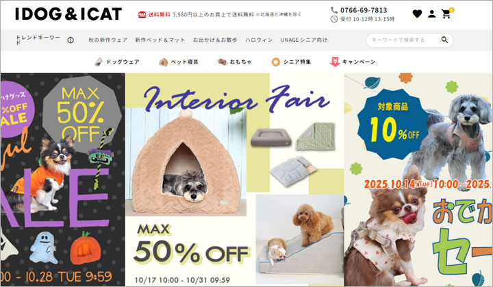 こちらは、犬猫アイテムを展開するブランドで、アイドッグアイキャットとなるオンラインショップも展開しています。